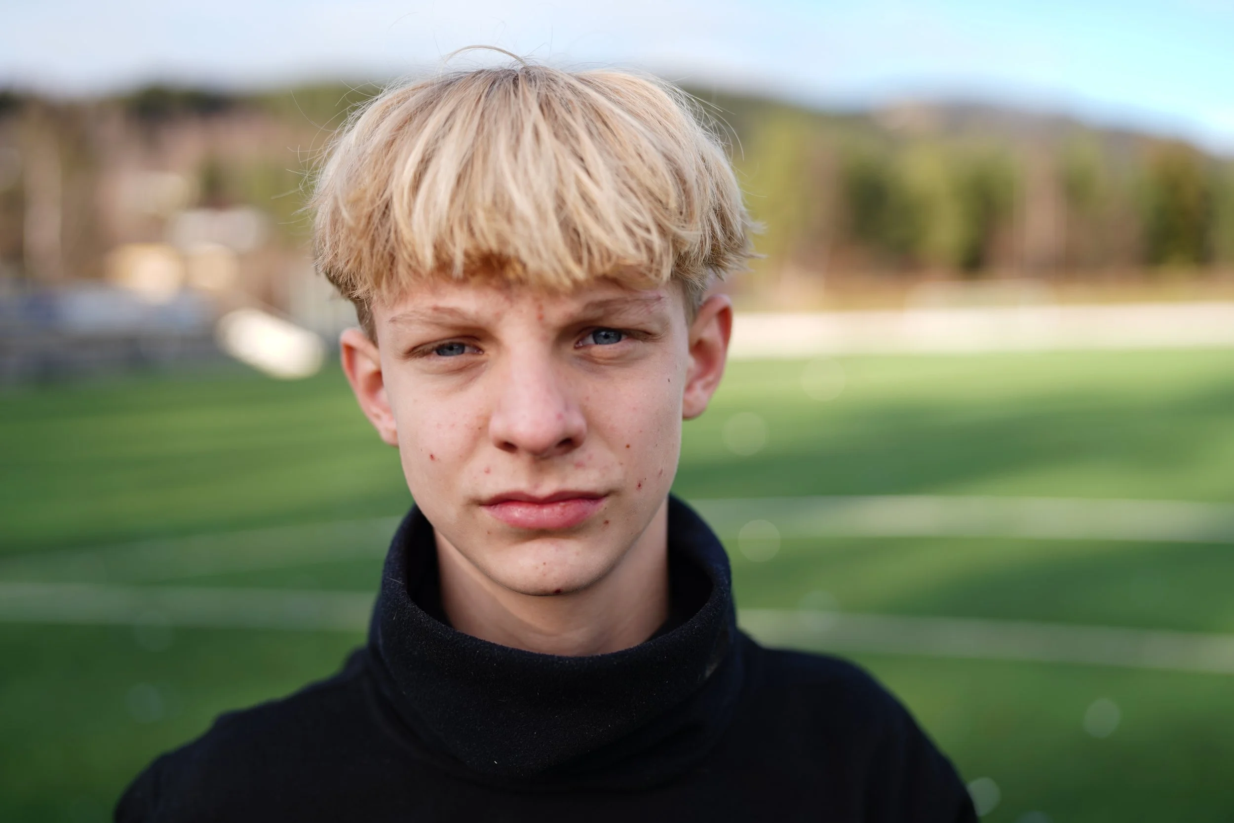 På Brovold stadion er tribunene tomme og gresset frostgrønt. Emil tester skuddfoten. Han limer kula i hjørnet. En person klapper på sidelinja og lyden gjaller hult mot åsene rundt Dokka.